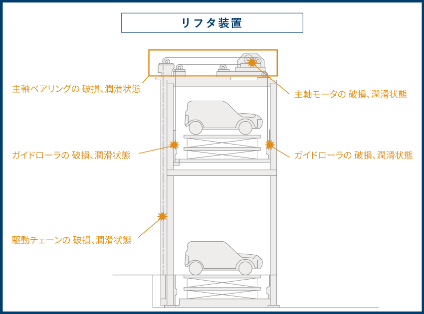 装置の故障要因となる部分にセンサを取付け常時計測を行う